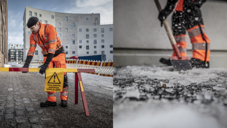 Pyrimme ennakoimaan lumentulon ja liukkauden, ja teemme puhdistus- ja hiekoitustyöt tarpeen mukaan, aina mahdollisimman järkevään...