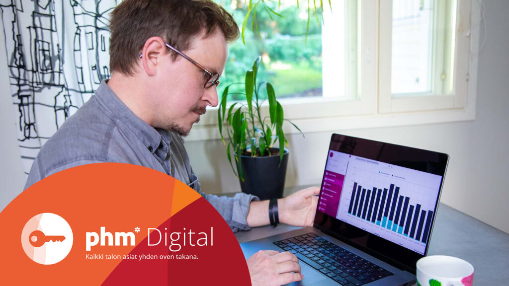 Taloyhtiön asioiden hoitoa voidaan sujuvoittaa hyödyntämällä taloyhtiöiden tarpeisiin suunnittelemaamme digitaalista palvelua PHM Digitalia. Palvelu mahdollistaa esimerkiksi kulutuslukemien ja huoltopyyntöjen seurannan sekä taloyhtiön sujuvan viestinnän. Verkkopalvelustamme voi käyttää valikoiden juuri omaan taloyhtiöön soveltuvia tarpeellisimpia toimintoja.